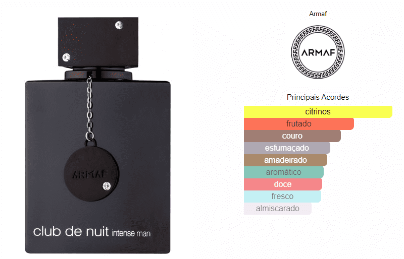 Club de Nuit Intense Man de Armaf é um perfume Amadeirado Especiado Masculino. Club de Nuit Intense Man foi lançada em 2015. As notas de topo são: Limão, Abacaxi, Bergamota, Groselha Preta e Maçã. As notas de coração são: Vidoeiro, Jasmim e Rosa. As notas de fundo são: Almíscar, Âmbar Cinzento, Patchouli e Baunilha.